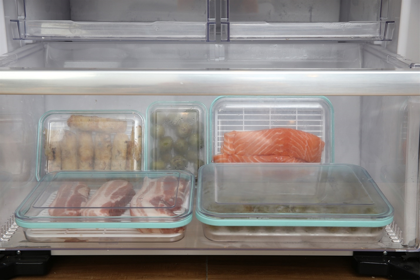 Thông thường các loại thực phẩm tươi sống như thịt, cá, hải sản, …. được bảo quản trong ngăn đông lạnh. Đây là ngăn có nhiệt độ thấp nhất trong tủ lạnh, bạn có thể lưu trữ thực phẩm trong vài tháng tùy vào từng loại. Sau khi mua thực phẩm từ chợ hay siêu thị, bạn nên chia thành từng phần, vừa đủ cho một lần dùng, cho vào hộp bảo quản thực phẩm ngăn đông có nắp đậy kín để vừa đảm bảo an toàn thực phẩm, vừa tiết kiệm diện tích sử dụng tủ lạnh. Nếu muốn dùng thì lấy một phần thực phẩm đó ra để rã đông, tránh tình trạng không dùng hết rồi cho lại ngăn đông để dự trữ.