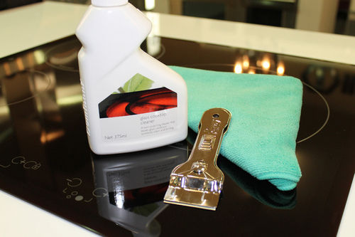 Đầu tiên, bạn cần loại bỏ các vết/mảng bám thức ăn trên bề mặt bếp bằng dao cạo chuyên dụng. Lưu ý, dùng loại dao chuyên dụng để hạn chế tối đa tình trạng xước mặt kính bếp. Nghiêng dao ở 1 góc khoảng 45 độ so với mặt kính và bắt đầu cạo.