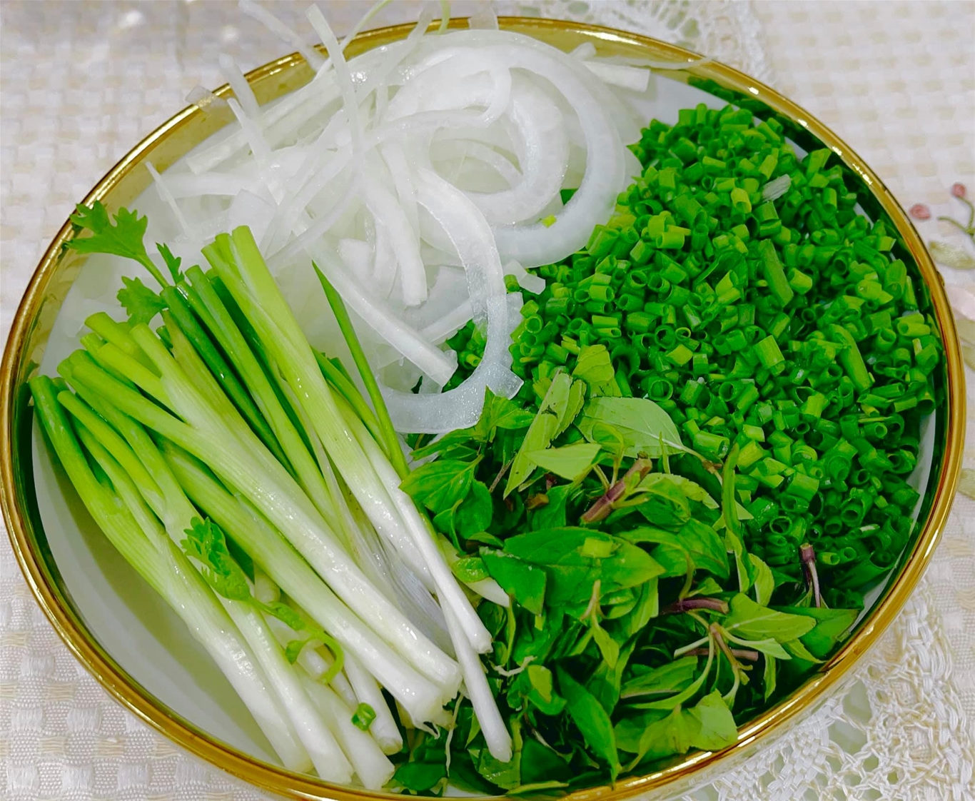 – Giá, đầu hành, bánh phở trần qua nước sôi