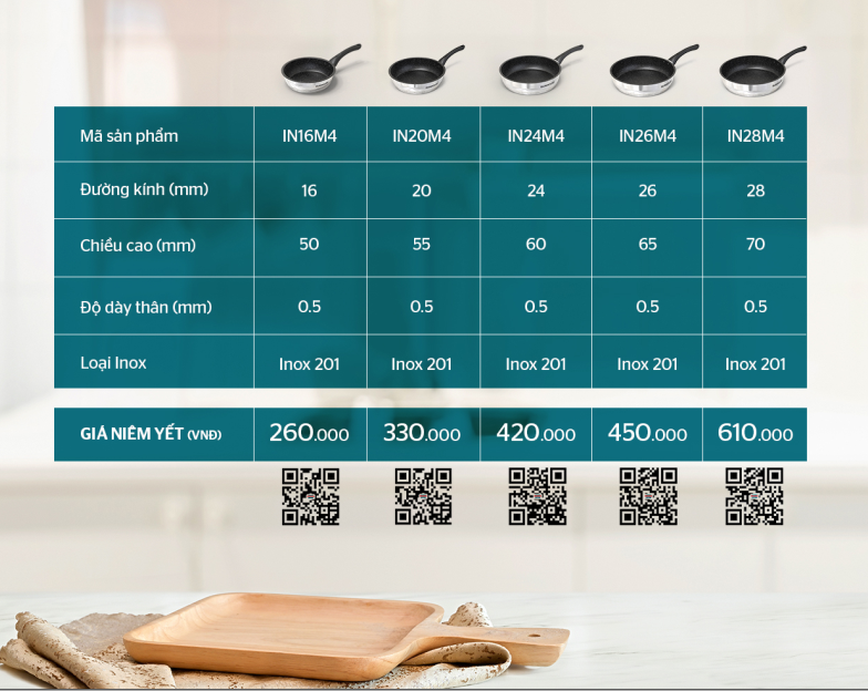 Các sản phẩm chảo chống dính CHÍNH HÃNG SUNHOUSE đa dạng về kích thước để đáp ứng nhu cầu của NTD