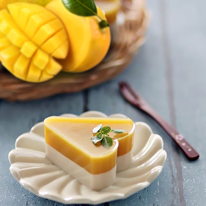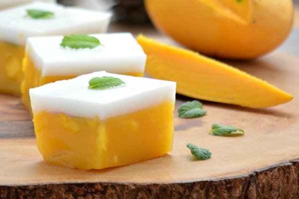 Xoài là loại thực phẩm ngon bổ rẻ, lại lành tính. Một quả xoài có thể cung cấp khoảng 25% lượng vitamin hàng ngày cho cơ thể, giúp làm sáng mắt, ngăn ngừa bệnh quáng gà và các tật khúc xạ ở mắt, hiện tượng khô mắt, viêm giác mạc. Bên cạnh đó, xoài rất có lợi cho phụ nữ mang thai và những người thiếu máu vì lượng chất sắt dồi dào. Lượng vitamin C trong xoài cũng giúp cân bằng sự hấp thụ sắt từ các loại thực phẩm khác vào trong cơ thể. Chính vì vậy, thạch rau câu xoài sữa tươi là đồ ăn giải nhiệt đặc biệt được yêu thích vào mùa hè, với cả trẻ em và phụ nữ có thai.