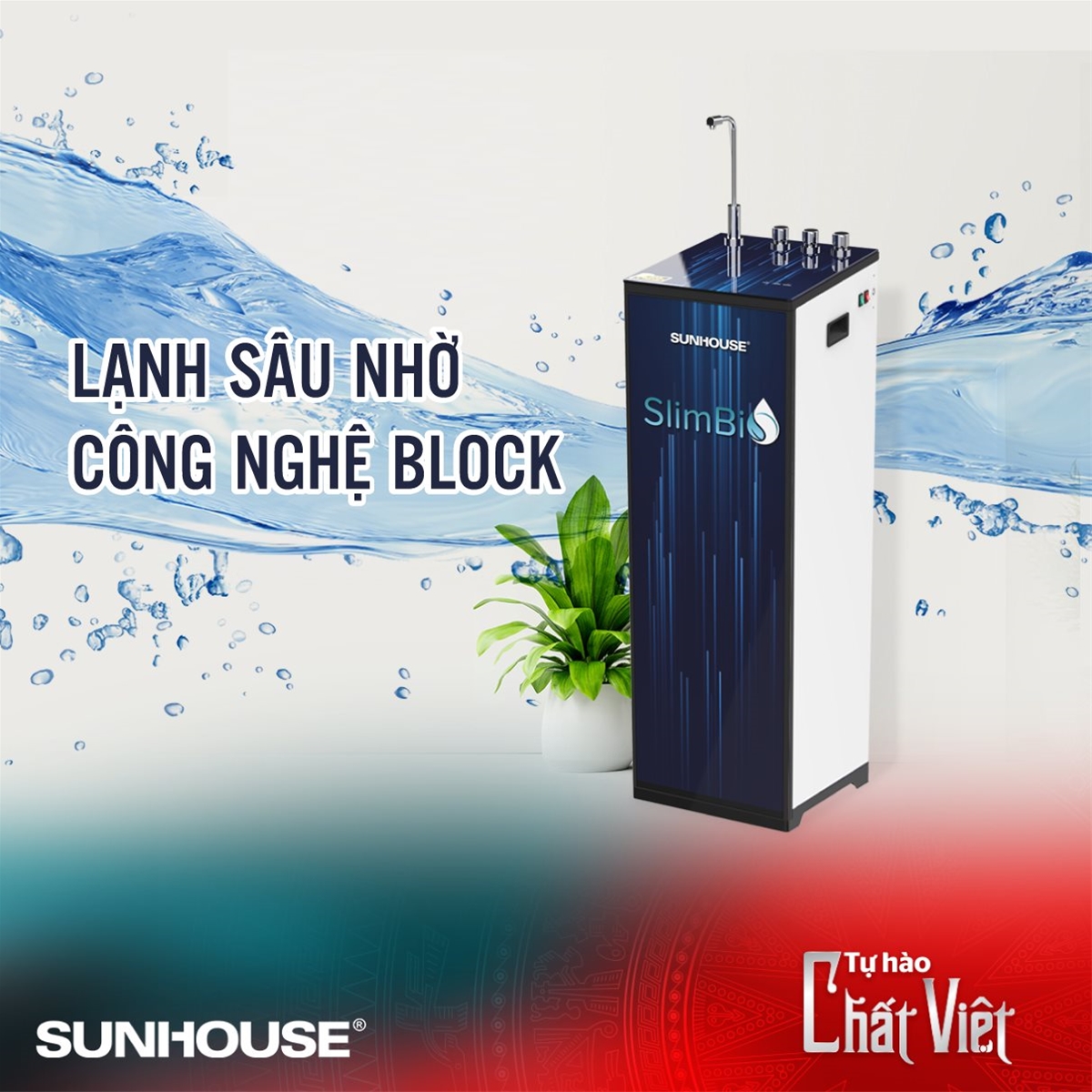 Được xem là một trong những cải tiến nổi bật ở máy lọc nước Sunhouse thế hệ mới. So với công nghệ làm lạnh bằng chip ở các dòng máy thường, công nghệ làm lạnh bằng block 360 độ cho nước lạnh sâu tới 6 độ – tương đương nhiệt độ nước trong ngăn mát tủ lạnh từ 4-6 tiếng. Bạn có thể dùng luôn nước lạnh mà không cần đợi hay thêm đá. Đồng thời công nghệ block còn giúp nâng cao tuổi thọ máy, dùng được lâu bên hơn máy lọc nước sử dụng chip thông thường.