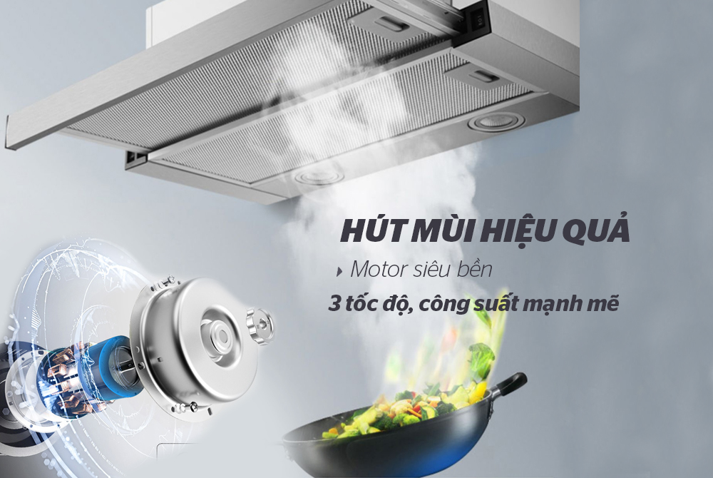 Với kiểu dáng sang trọng, nhỏ gọn cùng vỏ ngoài bằng inox sáng bóng, bền đẹp chắc chắn mang đến cho không gian bếp nhà bạn sự ngăn nắp mà vẫn tinh tế. Sản phẩm. Motor hoạt động ổn định với công suất 80Wx2 giúp việc khử mùi được tốt hơn. Motor 2 tốc độ cho bạn lựa chọn chế độ hút mong muốn.