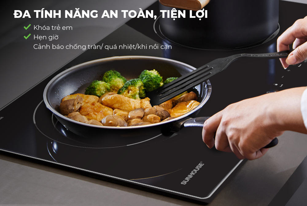 CHÍNH HÃNG SUNHOUSE SHB DI-68BN được trang bị nhiều tính năng hiện đại như hẹn giờ, khóa trẻ em và tự động ngắt khi quá tải giúp đảm bảo an toàn cho người sử dụng và nâng cao độ bền cho bếp.