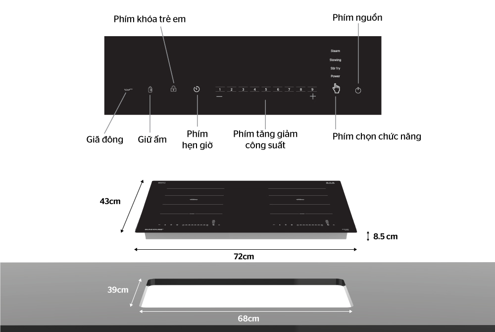 Sản phẩm được thiết kế lắp âm tủ vừa tiết kiệm diện tích, vừa góp phần tạo nên vẻ hiện đại cho căn bếp của bạn. Đây cũng là xu hướng thiết kế của nhà bếp hiện đại.