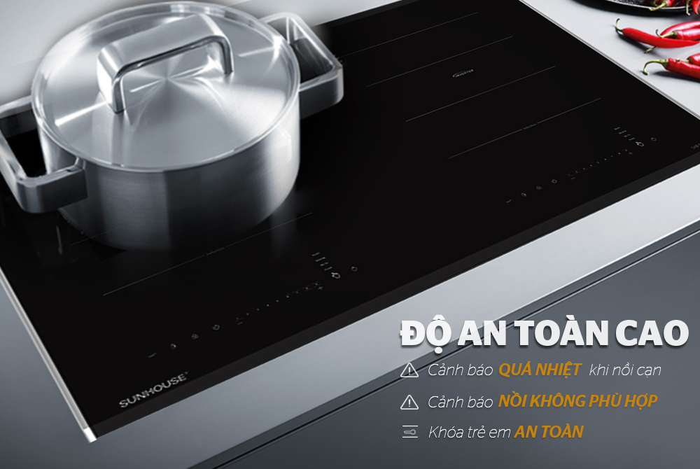 Bếp đôi điện từ CHÍNH HÃNG SUNHOUSE SHB DI66 được trang bị những tính năng an toàn như khóa trẻ em, tự động ngắt khi quá tải giúp bạn yên tâm sử dụng. Ngoài ra, sản phẩm còn được tích hợp tính năng hẹn giờ giúp bạn lựa chọn thời gian nấu phù hợp với từng món ăn.
