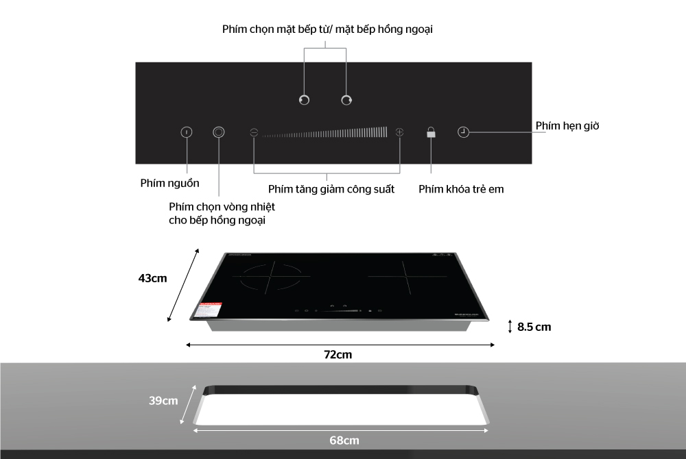 - Hai vùng nấu tiện lợi