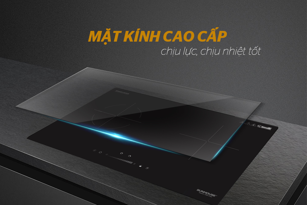 Bếp đôi điện từ hồng ngoại CHÍNH HÃNG SUNHOUSE SHB EI02 sử dụng mặt kính siêu bền chống trầy xước tốt, có khả năng chịu lực, chịu nhiệt tốt, an toàn khi sử dụng và dễ lau chùi.