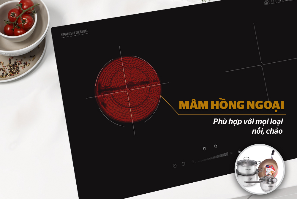 Ngoài vùng bếp từ, SHBEI02 còn có vùng bếp hồng ngoại, sử dụng được với mọi loại nồi chảo có đáy phẳng. Vì thế, bạn sẽ tiết kiệm được chi phí đáng kể vì không phải mua thêm nồi chảo dùng riêng cho bếp từ.