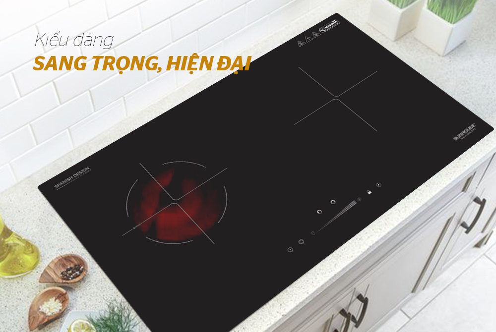 Bếp đôi điện từ hồng ngoại CHÍNH HÃNG SUNHOUSE SHB EI02 có thiết kế sang trọng rất phù hợp với các căn bếp có phong cách hiện đại. Mặt bếp làm bằng kính cao cấp, chịu lực, chịu nhiệt tốt. Bếp được trang bị bảng điều khiển cảm ứng cùng những tính năng an toàn, tiện lợi giúp bạn nấu nướng thuận tiện và nhanh chóng, tiết kiệm tối đa điện năng và thời gian.