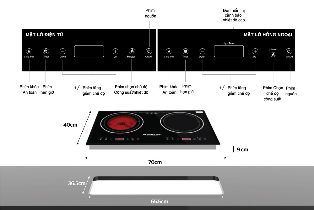 BẾP ĐÔI ĐIỆN TỪ HỒNG NGOẠI CHÍNH HÃNG SUNHOUSE SHB8609