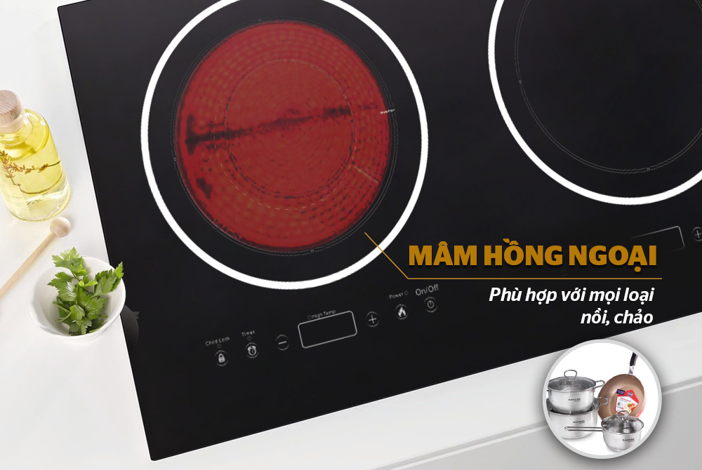 Ngoài vùng bếp từ, SHB8609 còn có vùng bếp hồng ngoại, sử dụng được với mọi loại nồi chảo có đáy phẳng. Vì thế, bạn sẽ tiết kiệm được chi phí đáng kể vì không phải mua thêm nồi chảo dùng riêng cho bếp từ.