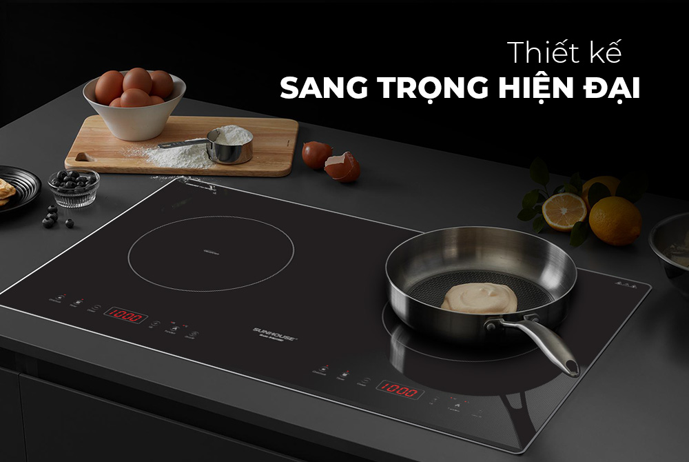 Bếp đôi điện từ CHÍNH HÃNG SUNHOUSE SHB999HP có kiểu dáng sang trọng với mặt kính đen toàn phần, các chi tiết trên bề mặt bếp được tối giản, tinh tế. Đặc biệt, thiết kế lắp âm càng tạo nên sự hiện đại cho căn bếp của bạn.