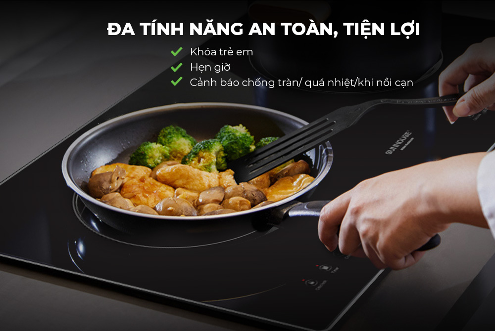Bếp đôi điện từ CHÍNH HÃNG SUNHOUSE SHB999HP được trang bị nhiều tính năng hiện đại như hẹn giờ, khóa trẻ em và cảm ứng nhiệt, tự động ngắt khi quá tải giúp đảm bảo an toàn cho người sử dụng và nâng cao độ bền cho bếp.