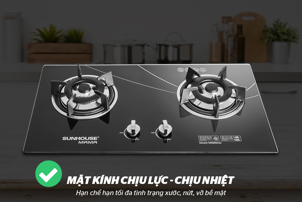 Bếp gas âm kính là một cải tiến về thiết kế so với các mẫu mã bếp gas dương thông thường, đem lại sự sang trọng, hiện đại cho căn bếp gia đình. Đáp ứng nhu cầu phong phú của người tiêu dùng, CHÍNH HÃNG SUNHOUSE đem đến model bếp gas âm kính CHÍNH HÃNG SUNHOUSE MAMA MMB6633 công nghệ Hàn Quốc với giá thành phải chăng, chất lượng bền bỉ, tiết kiệm gas và an toàn cho người sử dụng. Bếp phù hợp trong mọi không gian bếp, là lựa chọn của người tiêu dùng thông thái!