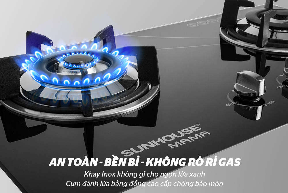 Bếp gas âm kính CHÍNH HÃNG SUNHOUSE MAMA MMB6633 có hệ thống đánh lửa bằng PIN rất an toàn, tiện lợi. Bạn dễ dàng bật tắt và điều chỉnh lửa bằng 2 núm vặn cực nhạy, chỉ cần xoay 1 lần là lửa đã cháy, không cần bật nhiều lần gây rò rỉ và hao phí gas.