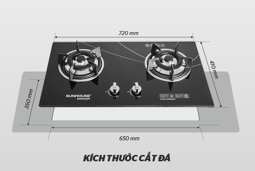 BẾP GAS ÂM KÍNH CHÍNH HÃNG SUNHOUSE MAMA MMB6633