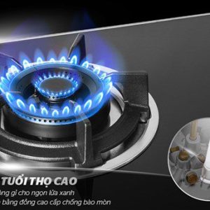 Đầu đốt được thiết kế với nhiều khe nhỏ, bát chia lửa lớn giúp ngọn lửa tỏa đều (3 vòng lửa), nấu ăn nhanh, được trang bị cả đầu hâm nên rất tiết kiệm gas. Được làm từ đồng thau chống bào mòn sử dụng lâu dài, đầu đốt sẽ không bị biến dạng dù cho việc sử dụng dưới nhiệt độ cao trong một khoảng thời gian dài khi ninh, hầm,… Họng bếp bằng thép không gỉ, không sinh ra muội đen, cho ngọn lửa xanh không đen đáy nồi, tiết kiệm nhiên liệu và an toàn khi sử dụng.