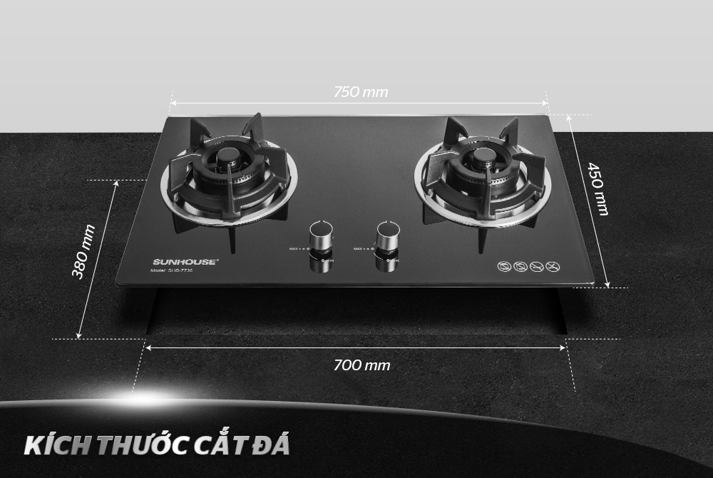 BẾP GAS ÂM KÍNH CHÍNH HÃNG SUNHOUSE SHB7736