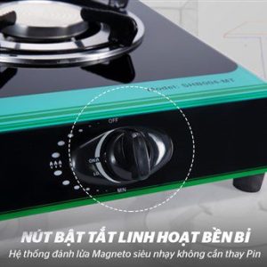 Sản phẩm có thiết kế nút bật tắt linh hoạt giúp bạn dễ dàng bật tắt và điều chỉnh lửa bằng 2 núm vặn cực nhạy, chỉ cần xoay 1 lần là lửa đã cháy, không cần bật nhiều lần gây rò rỉ và hao phí gas.