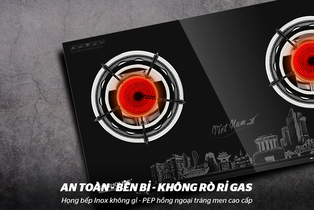 Sản phẩm sử dụng PEP hồng ngoại bằng thép tráng men sáng bóng, không cong vênh, không bị oxy hóa, không sinh ra muội đen trong quá trình sử dụng và cho ngọn lửa xanh đều.