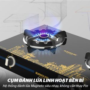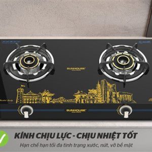 Bếp gas dương kính CHÍNH HÃNG SUNHOUSE SHB0912 có 2 lò đun, điều khiển lửa to nhỏ bằng núm vặn tiện lợi, chế biến được nhiều món ăn cùng lúc. Mặt kính với gam màu tối sang trọng, tô điểm họa tiết trang trí các địa danh nổi tiếng Việt Nam, vừa mang lại tính thẩm mỹ cao vừa có khả năng chịu lực, chịu nhiệt, đồng thời dễ dàng vệ sinh sau khi sử dụng.