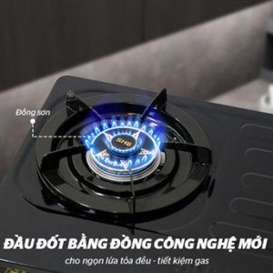 Đầu đốt của bếp làm bằng đồng công nghệ mới, chịu nhiệt tốt, không bị biến dạng ngay cả khi sử dụng dưới nhiệt độ cao trong một khoảng thời gian dài khi ninh, hầm,…, giúp ngọn lửa tỏa đều và tiết kiệm gas.