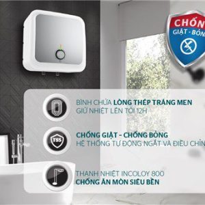 Bên cạnh đó, sản phẩm còn có khả năng giữ nhiệt lên tới 12H nhờ bình chứa lòng thép tráng men, giúp tiết kiệm điện năng cho gia đình.