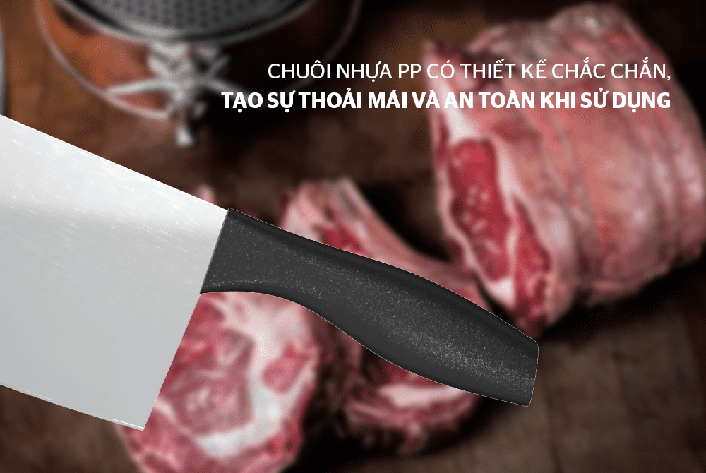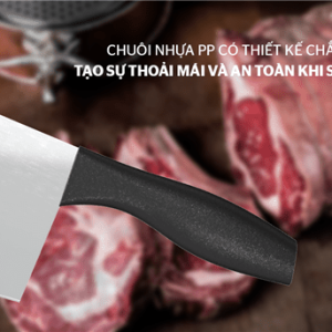 Thiết kế chuôi dao không quá cầu kỳ và được sản xuất nhựa PP nguyên sinh cao cấp, chắc chắn, tạo cho người dùng cảm giác thuận tiện và dễ dàng trong thao tác thái, chế biến thực phẩm.