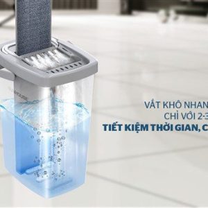Nhờ bộ chuyển động được thiết kế để xoay-gập một cách trơn tru, khi giặt hay vắt bông lau, bạn chỉ cần gập bàn lau song song với tay cầm và đẩy vào ngăn giặt, đồng thời kéo cây lau lên xuống theo chiều thẳng đứng 2-3 lần là cây lau đã được vắt khô và làm sạch, vô cùng tiện lợi và nhanh chóng.