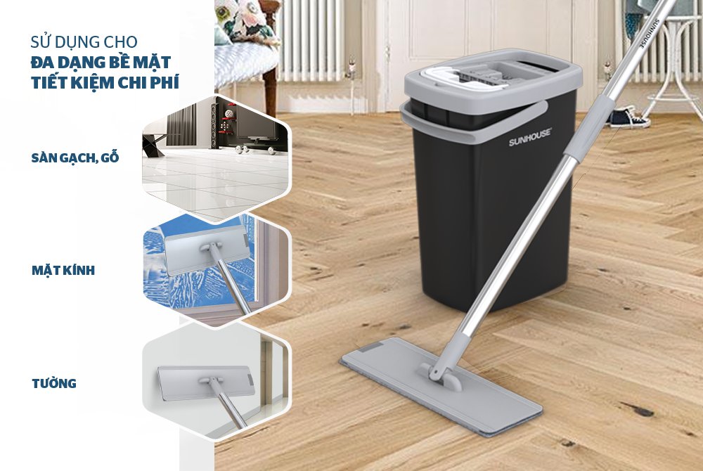 Bộ lau nhà là vật dụng vệ sinh không thể thiếu trong mỗi gia đình. Sản phẩm Bộ lau nhà đa năng Space Saving CHÍNH HÃNG SUNHOUSE KS-CL3211PB được cấu tạo từ những vật liệu bền chắc, an toàn, bông lau sợi tổng hợp thấm hút tốt cùng thiết kế xoay 360 độ, giúp bạn dễ dàng lau sạch bụi bẩn trong mọi ngóc ngách và cả những nơi khó lau dọn như gầm giường, gầm bàn, tủ, ghế… giữ cho ngôi nhà của bạn luôn sạch sẽ và thoáng mát.