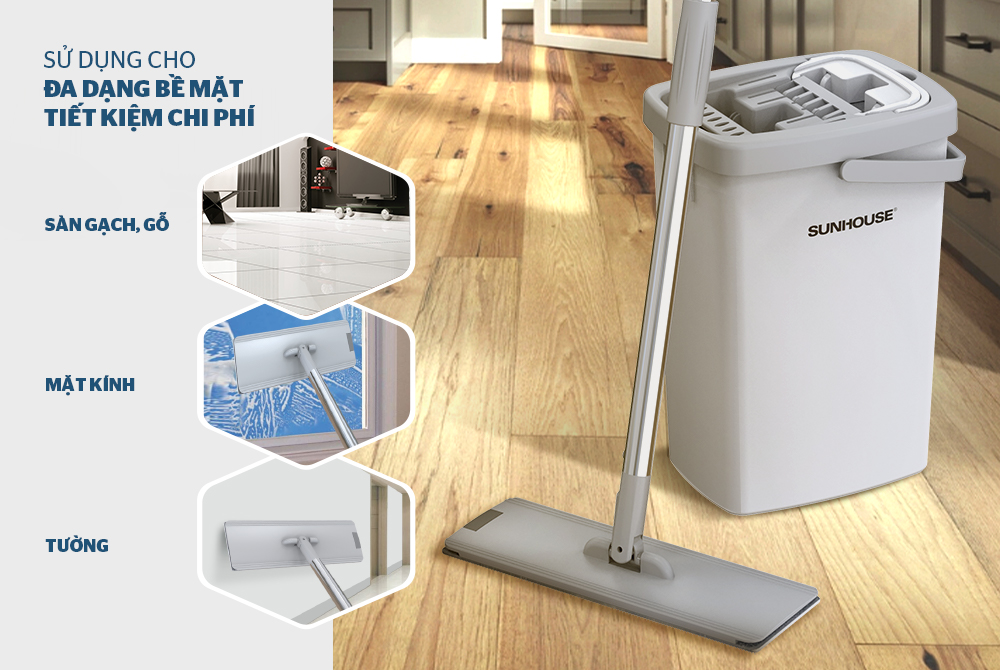 Bộ lau nhà là vật dụng vệ sinh không thể thiếu trong mỗi gia đình. Sản phẩm Bộ lau nhà đa năng Space Saving CHÍNH HÃNG SUNHOUSE KS-CL3211PW được cấu tạo từ những vật liệu bền chắc, an toàn, bông lau sợi tổng hợp thấm hút tốt cùng thiết kế xoay 360 độ, giúp bạn dễ dàng lau sạch bụi bẩn trong mọi ngóc ngách và cả những nơi khó lau dọn như gầm giường, gầm bàn, tủ, ghế… giữ cho ngôi nhà của bạn luôn sạch sẽ và thoáng mát.