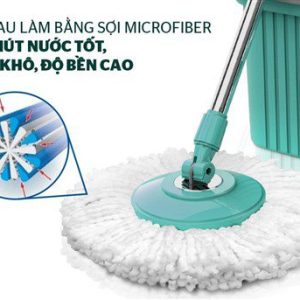 Tấm bông lau làm bằng sợi Microfiber thiết kế đan chéo lập thể siêu nhỏ giúp thấm hút nước tốt, vắt khô nhanh gấp nhiều lần so với các loại khăn lau thông thường, có tác dụng lau sạch bụi bẩn nhanh chóng nhất. Hệ thống vắt nước tích hợp gọn và tiện lợi, dễ dàng giặt và vắt khô bông lau. Đặc biệt, sợi Microfiber có ưu điểm là không bị xơ cứng nên không làm trầy xước bề mặt được lau.