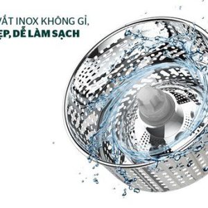 Bên trong thùng giặt có 1 lồng vắt bằng inox chống han gỉ và giúp dễ dàng vắt khô nước của bông lau nhờ cơ chế vắt ly tâm và thiết kế lỗ thoát tiện dụng.