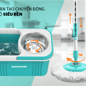 Bộ lau nhà là vật dụng cần thiết cho mỗi gia đình. Sản phẩm Bộ lau nhà xoay 360 độ CHÍNH HÃNG SUNHOUSE KS-CL350PB bao gồm một thùng giặt có chứa lồng vắt và 1 cây lau. Với điểm nhấn là bộ tạo chuyển động 360 độ siêu bền, bộ lau nhà CHÍNH HÃNG SUNHOUSE bạn sẽ dễ dàng lau sạch bụi bẩn trong mọi ngóc ngách và cả những nơi khó lau dọn như gầm giường, gầm bàn, tủ, ghế… giữ cho ngôi nhà của bạn luôn sạch sẽ và thoáng mát.
