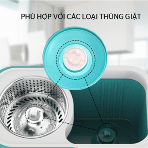 Bên trong thùng giặt có 1 lồng vắt bằng inox chống han gỉ và giúp dễ dàng vắt khô nước của bông lau nhờ cơ chế vắt ly tâm và thiết kế lỗ thoát tiện dụng.