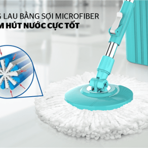 Tấm bông lau làm bằng sợi Microfiber thiết kế đan chéo lập thể siêu nhỏ giúp thấm hút nước tốt, vắt khô nhanh gấp nhiều lần so với các loại khăn lau thông thường, có tác dụng lau sạch bụi bẩn nhanh chóng nhất. Hệ thống vắt nước tích hợp gọn và tiện lợi, dễ dàng giặt và vắt khô bông lau. Đặc biệt, sợi Microfiber có ưu điểm là không bị xơ cứng nên không làm trầy xước bề mặt được lau.