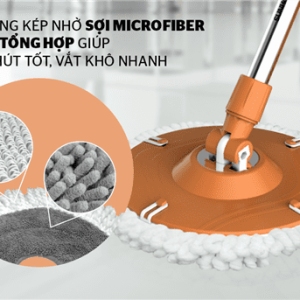 Tấm bông lau làm bằng sợi Microfiber kết hợp cùng sợi tổng hợp thiết kế đan chéo lập thể siêu nhỏ có tác động kép không chỉ giúp thấm hút nước tốt, vắt khô nhanh gấp nhiều lần so với các loại khăn lau thông thường mà còn có tác dụng lau sạch bụi bẩn nhanh chóng nhất. Hệ thống vắt nước tích hợp gọn và tiện lợi, dễ dàng giặt và vắt khô bông lau. Đặc biệt, 2 sợi này có ưu điểm là không bị xơ cứng nên không làm trầy xước bề mặt được lau.