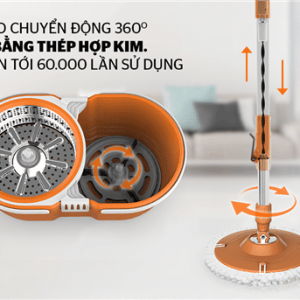 Bộ phận tạo chuyển động với thanh dẫn động xoắn bằng thép hợp kim và cơ cấu tạo chuyển động bằng nhựa POM chống mài mòn tốt cùng hệ thống giảm chấn động bằng cao su giúp tạo chuyển động 360 độ nhẹ nhàng, tăng độ bền sản phẩm (thao tác vắt 60.000 lần). Chỉ cần nhấn cây lau vào thùng giặt hoặc lồng vắt bạn sẽ dễ dàng giặt hoặc vắt khô bông lau.