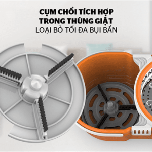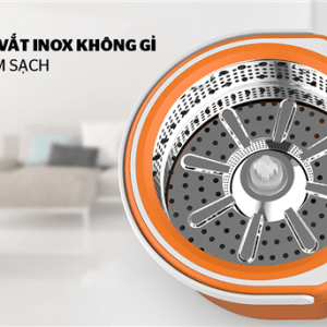 Bên trong thùng giặt có 1 lồng vắt bằng inox chống han gỉ và giúp dễ dàng vắt khô nước của bông lau nhờ cơ chế vắt ly tâm và thiết kế lỗ thoát tiện dụng.
