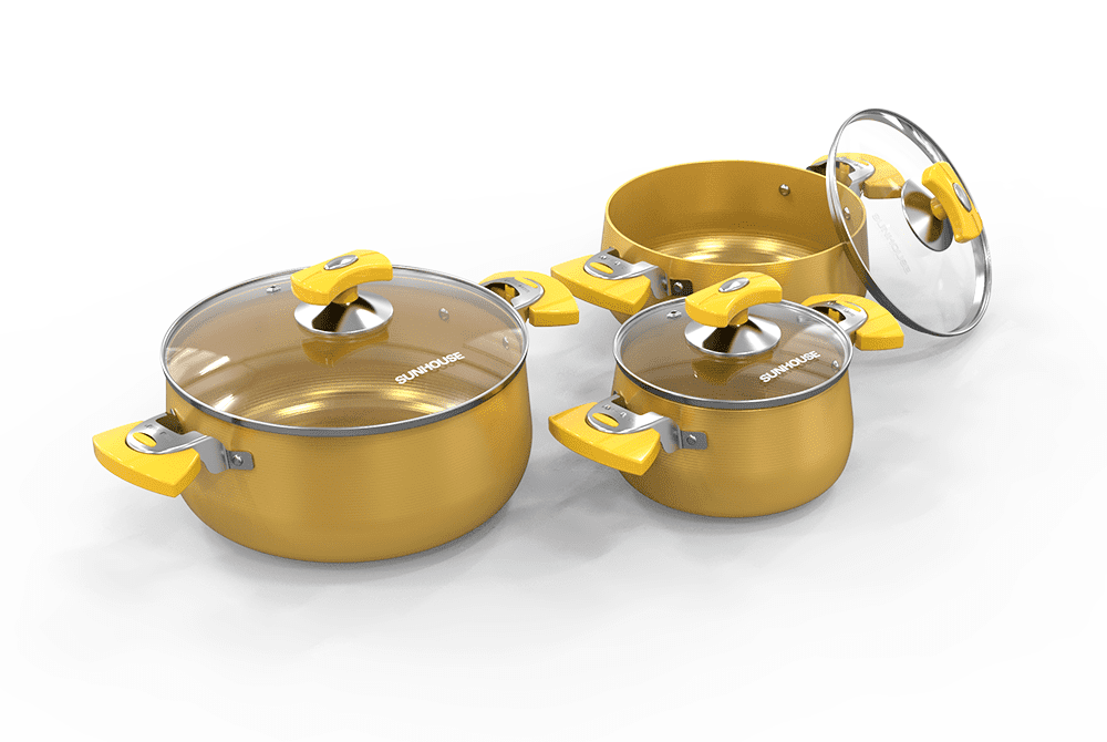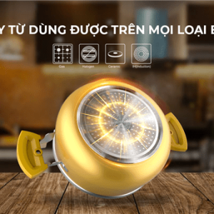 Bộ nồi Anod đáy từ cao cấp CHÍNH HÃNG SUNHOUSE SHG7735M-HK có thiết kế đáy bo tròn hiện đại cùng màu vàng đồng sáng bóng tạo nên bộ sản phẩm nồi có vẻ đẹp sang trọng, bắt mắt, tạo nên điểm nhấn độc đáo trong căn bếp của mỗi gia đình