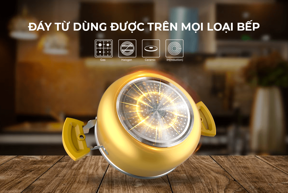 Đáy từ giúp cho nồi có khả năng bắt từ cực tốt, đồng thời có thể sử dụng trên nhiều loại bếp khác nhau như: bếp gas, bếp hồng ngoại và bếp từ. Phù hợp để sử dụng trong căn bếp của mọi nhà.