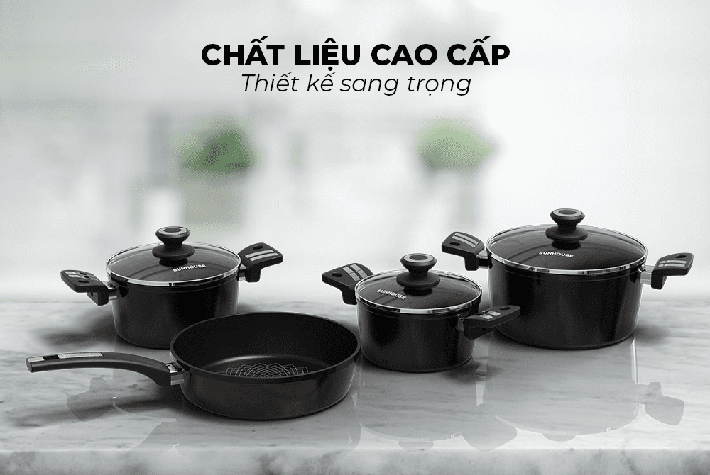 Bộ nồi chảo chống dính Ultra Titanium CHÍNH HÃNG SUNHOUSE ST2204B có thiết kế nổi bật, màu sắc sang trọng, làm điểm nhấn độc đáo cho căn bếp. Được thiết kế với lớp chống dính Ultra titanium cao cấp, sản phẩm có độ bền lên tới 15 năm, chấp 99.999 lần chà, an toàn khi nấu nướng ở nhiệt độ cao. Bộ nồi chảo gồm 4 sản phẩm khác nhau phục vụ cho nhu cầu nấu nướng đa dạng của mọi gia đình.