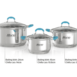 Bộ nồi inox 304 5 đáy CHÍNH HÃNG SUNHOUSE MAMA SHG504 gồm 03 nồi với đường kính 16 – 20 – 24 cm, phù hợp với nhu cầu nấu nướng tại gia đình. Nồi nhỏ 16 cm thích hợp luộc trứng, kho thịt trong khi nồi cỡ trung 20 cm có thể nấu canh cho 2 – 4 người còn nồi lớn 24 cm có thể dùng để luộc gà, nấu canh hoặc lẩu cho 3 – 5 người.
