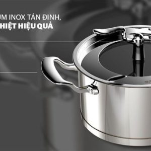 • Cấu tạo đáy 5 lớp giữ nhiệt tốt, tỏa nhiệt đều hạn chế cháy khét thực phẩm