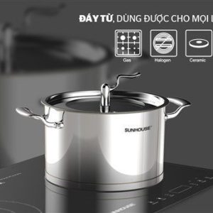 Bộ nồi inox 5 đáy CHÍNH HÃNG SUNHOUSE SHG2503MSA sử dụng được với mọi loại bếp, kể cả bếp từ. Bộ sản phẩm gồm 3 nồi với đường kính 16cm – 20cm – 24cm phù hợp với nhu cầu nấu nướng của mọi gia đình. Nồi nhỏ 16cm thích hợp để luộc trứng, kho thịt, nồi cỡ trung 20cm để nấu canh cho 2-4 người và nồi lớn 24cm có thể luộc gà, nấu canh hoặc lẩu cho 3-5 người.