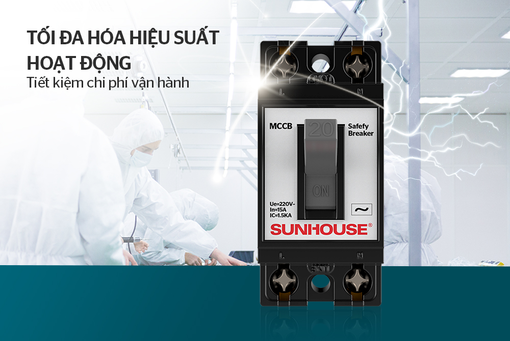 CẦU DAO AN TOÀN CHÍNH HÃNG SUNHOUSE MCCB 2 CỰC SHE-B-S121/25A-B
