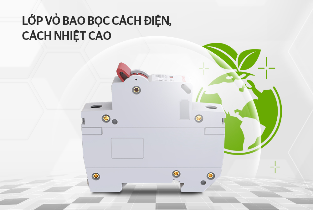 Thiết kế bền, chắc với lớp vỏ bao bọc cách điện cách nhiệt cao. Thiết kế có diện tích tay gạt khá thích hợp, vừa đủ để thực hiện chính xác động tác đóng ngắt điện, thanh gạt nhựa cách điện tốt, đem lại sự an toàn tuyệt đối.