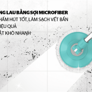 Tấm bông lau thấm hút nước tốt, vắt khô khanh có tác dụng lau sạch bụi hiệu quả. Hệ thống vắt khô nước tích hợp gọn và tiện lợi, dễ dàng giặt và vắt khô bông lau.