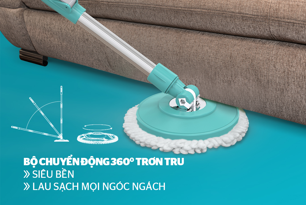 Bên cạnh đó, cây lau còn có thể điều chỉnh được độ dài giúp làm sạch cả những góc khuất khó lau dọn như gầm giường, tủ hay cả những nơi cao, khó với tới.